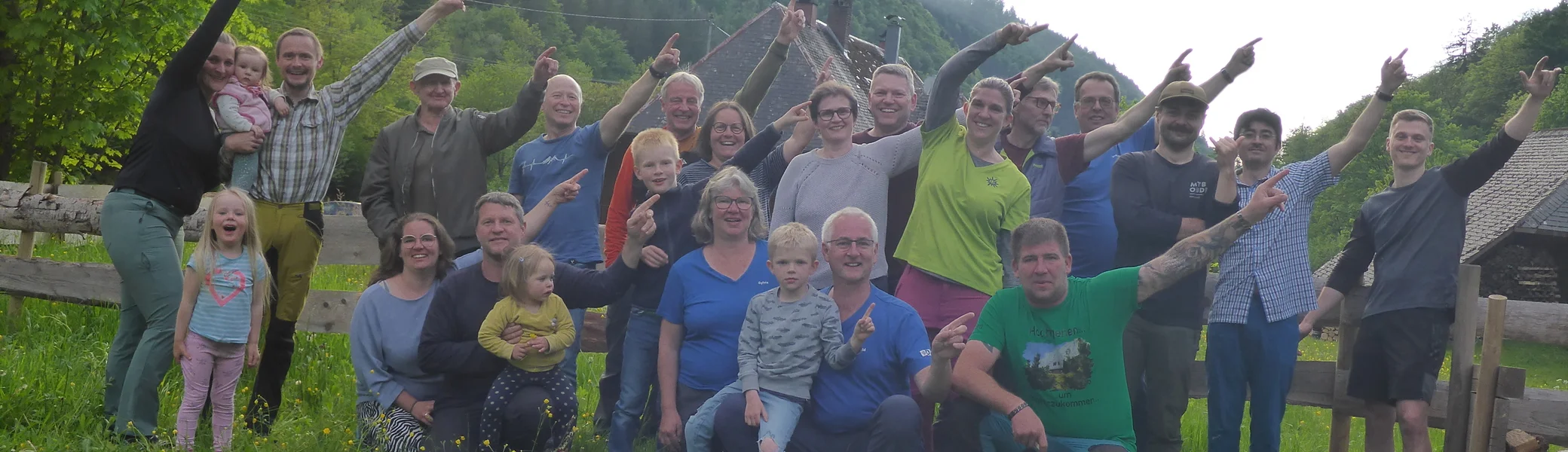 Vom 9.- 11. Mai 2025 verbrachten rund 29 Mitglieder der BG Oberndorf (Sektion Oberer Neckar) in Oberried im Schwarzwald ein abwechslungsreiches Bergsport-Wochenende. Die altersgemischte Gruppe von 9 Monaten bis 70+ harmonierte wunderbar – es war ja auch für alle Geschmäcker und Niveaus etwas geboten: Bergwandern – Klettern – Radeln mit und ohne Rückenwind und eine Familienwanderung. All dies war vom schönen Mederlehof im Zastlertal – ein Selbstversorgerhaus - aus direkt oder nach kurzer Anfahrt möglich. Diese besondere Unterkunft – ein uralter aber wunderbar und einfühlsam sanierter Schwarzwälder Einzelhof - bot alles unter seinem gewaltigen Dach: großzügige, helle Zimmer mit guten Betten, moderne Sanitäreinrichtungen, eine toll ausgestattete Küche, geräumige Aufenthaltsräume, eine riesige Tenne und einem schönen Außenbereich. So ließ sich schon der erste Abend sehr gemütlich an mit gutem Essen vom Grill, Lagerfeuer mit Stockbrot, Tourenplanung und vielen Geschichten. Der Samstag war dann prall gefüllt mit den verschiedenen Aktivitäten, die bei bestem Wetter besonders Freude machten. So radelten die Mountainbiker auf den Canadian Trail und den Trail Borderline mit einer Mittagspause in Freiburg, die Wanderer erklommen das Roteck und den Hinterwaldkopf samt Hinterwaldkopfhütte, die Familienwanderer wanderten zur Zastlerhütte und immer am rauschenden Bach zurück, die E-Mountainbiker radelten über den Rinken zum Feldberg und zwei Seilschaften kletterten am Gfällfelsen.